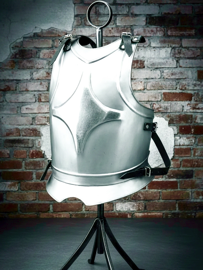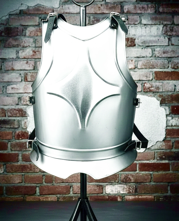 This is a functional  medieval-style breastplate made from 18 gauge high-carbon steel.