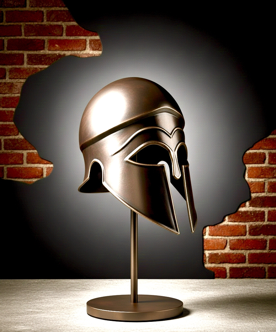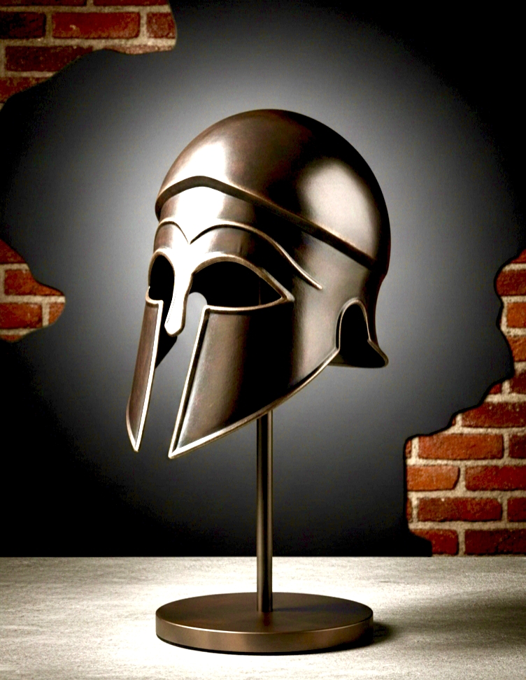 This is an Italo-Corinthian helmet, a replica of an ancient Greek helmet style.