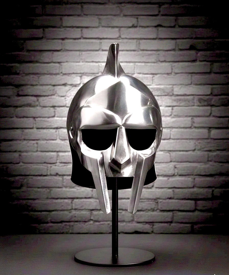 A meticulously crafted replica of the gladiator helmet made with durable materials and polished to a gleaming finish for a realistic look.