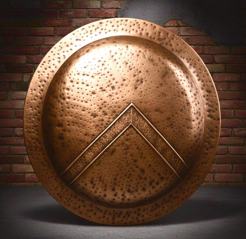 The “King Leonidas Shield” is directly inspired by the one used in the movie 300 (2006). It’s a round Spartan shield, often bronze or gold-colored, with a distinctive Λ (lambda) design symbolizing Lacedaemon (Sparta). Modern replicas are crafted in steel or aluminium for collectors, cosplay, and reenactments.