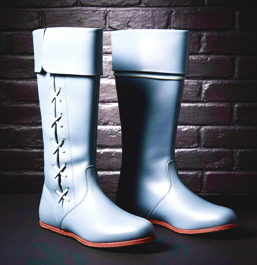 The Medieval Leather Long Boots were a staple of footwear in Europe during the Middle Ages, especially for riders, soldiers, and wealthier classes. They combined practicality with status, offering protection and durability in everyday life and on the battlefield.