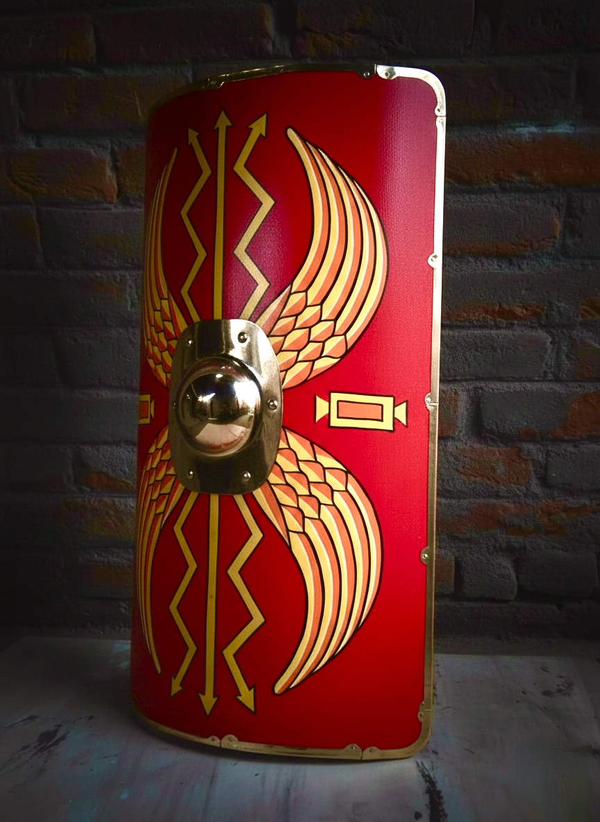 - Decoration: Painted with wings, echoing Roman legionary designs.