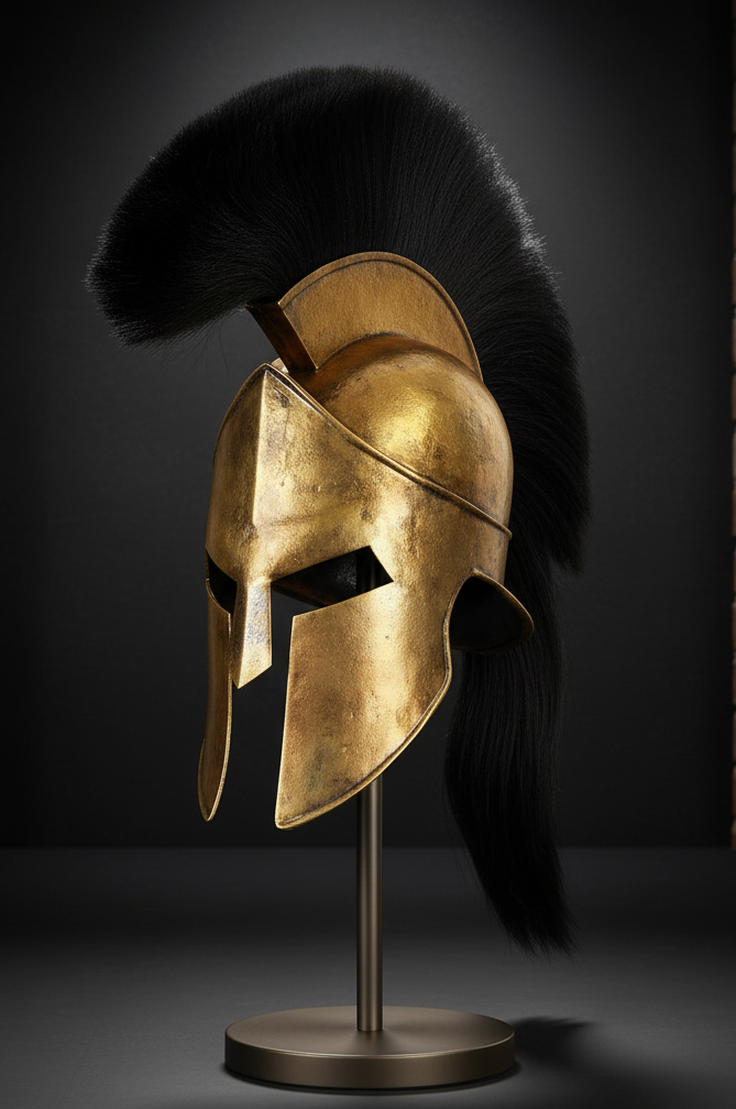 Inspired by the iconic Spartan warriors from the Hollywood movie 300, this Spartan helmet with black plume delivers a bold, battle-ready look. Featuring a strong build, classic Corinthian-style shape, and striking black crest, it reflects the power and discipline of ancient Sparta. Ideal for collectors, reenactors, cosplay, and display, this helmet offers cinematic style, warrior appeal, and solid craftsmanship.