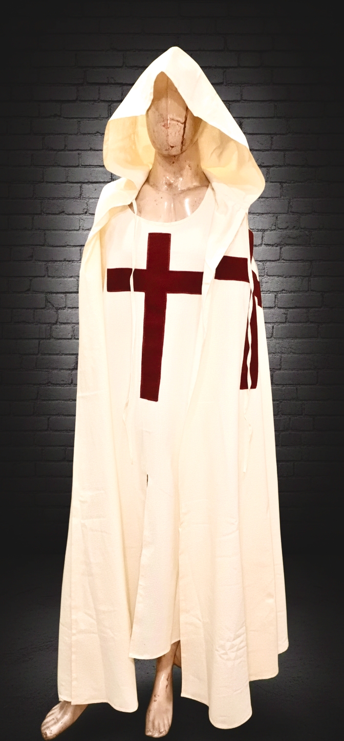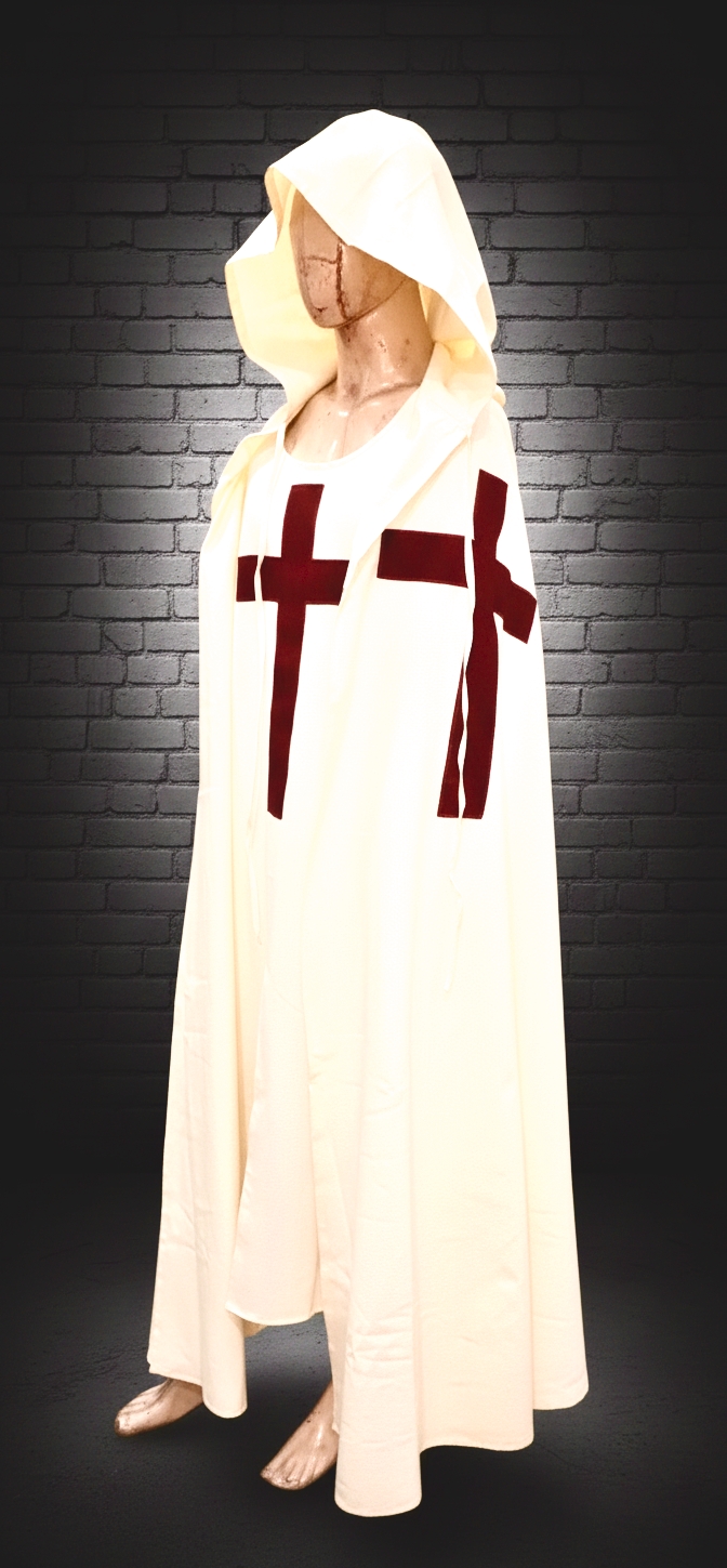 Made of Medium Weight Cotton with Hood One Size Fits Most. This Crusader Tunic Surcoat Has a Cotton Cross.This Cape is perfect for collection, accent display, costume apparel accessory for re-enactments plays, LARP, SCA, renfairs, weddings, parties and special occasions. This is also a nice gift idea to a Medieval fan or collector.